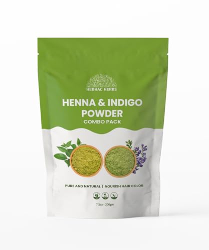 Hebhac Herbals Organic Henna & Indigo Powder Hair Dye Combo – 100g Each | Pure Hair Color Powders, Chemical-Free, Herbal, Natural Hair Colour