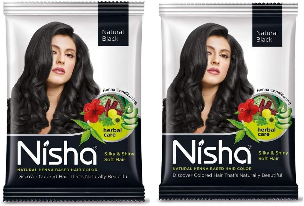 Nisha Natural Henna Based Hair Color Powder, Natural Brown, Natural Black, Burg