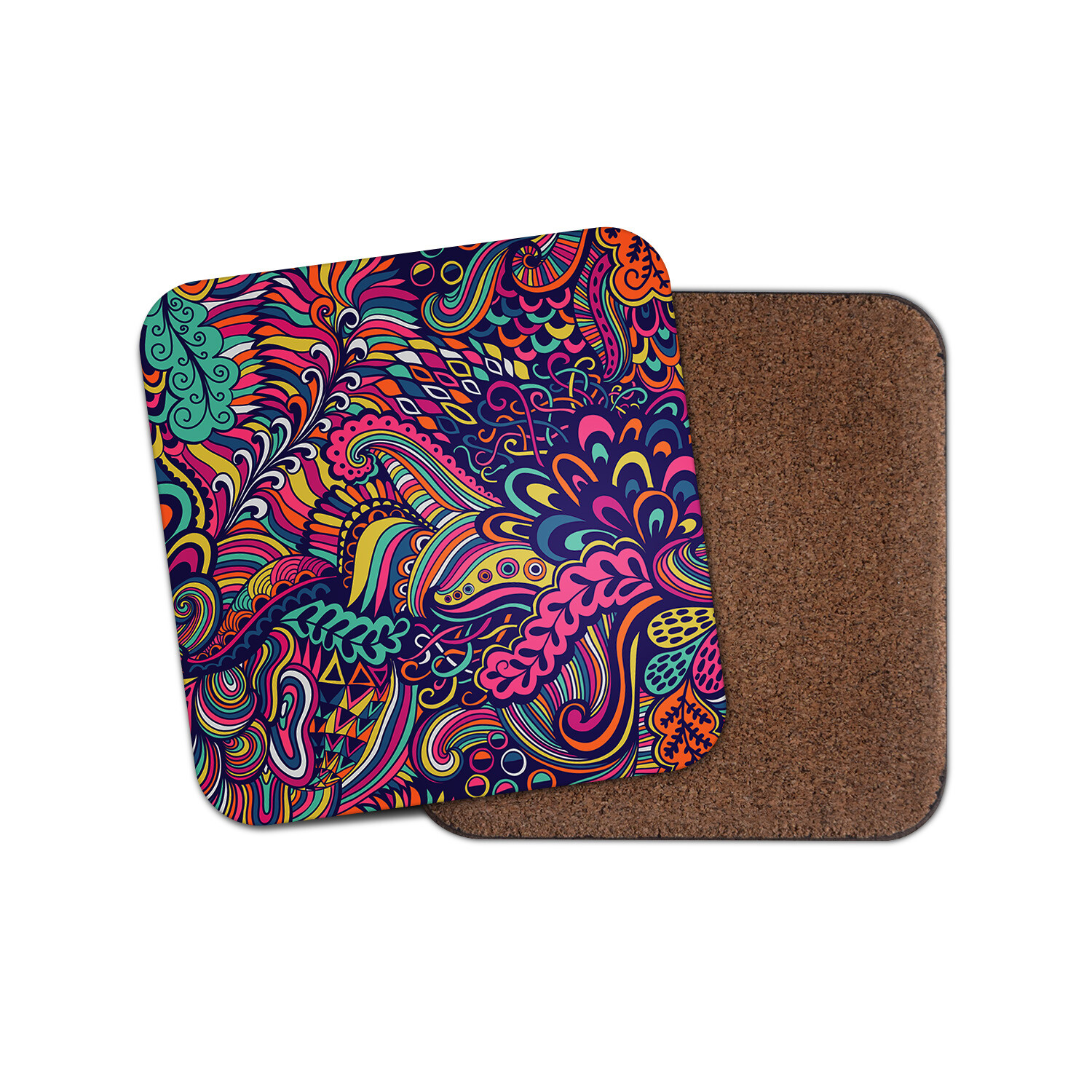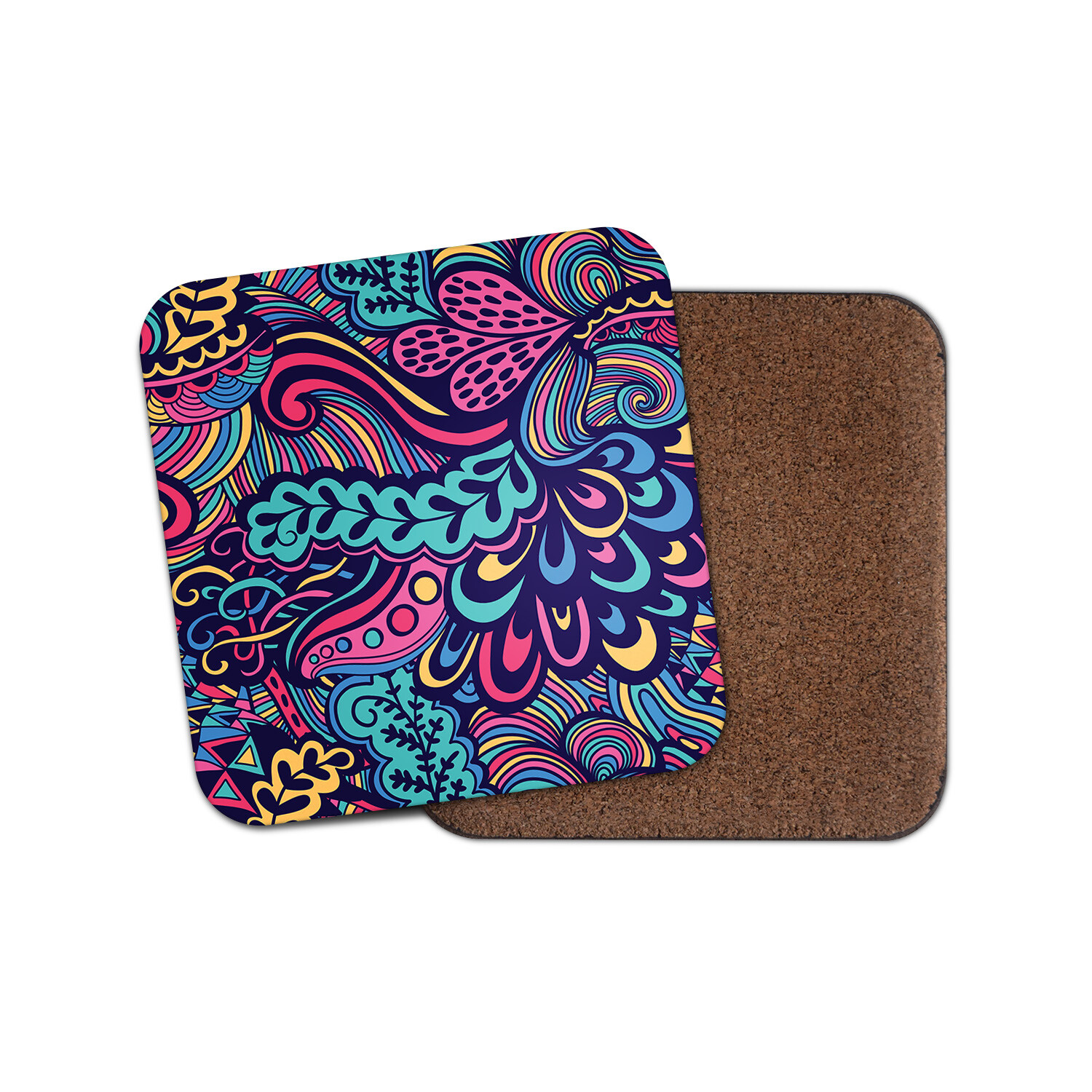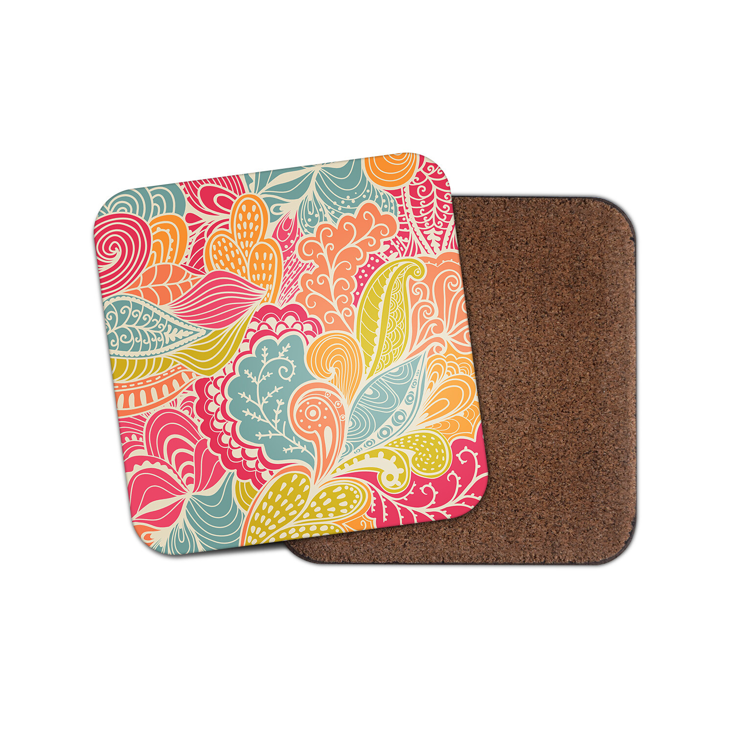 Awesome Colourful Flowers Coaster - Pattern Funky Cool Henna Tattoo Gift #12821