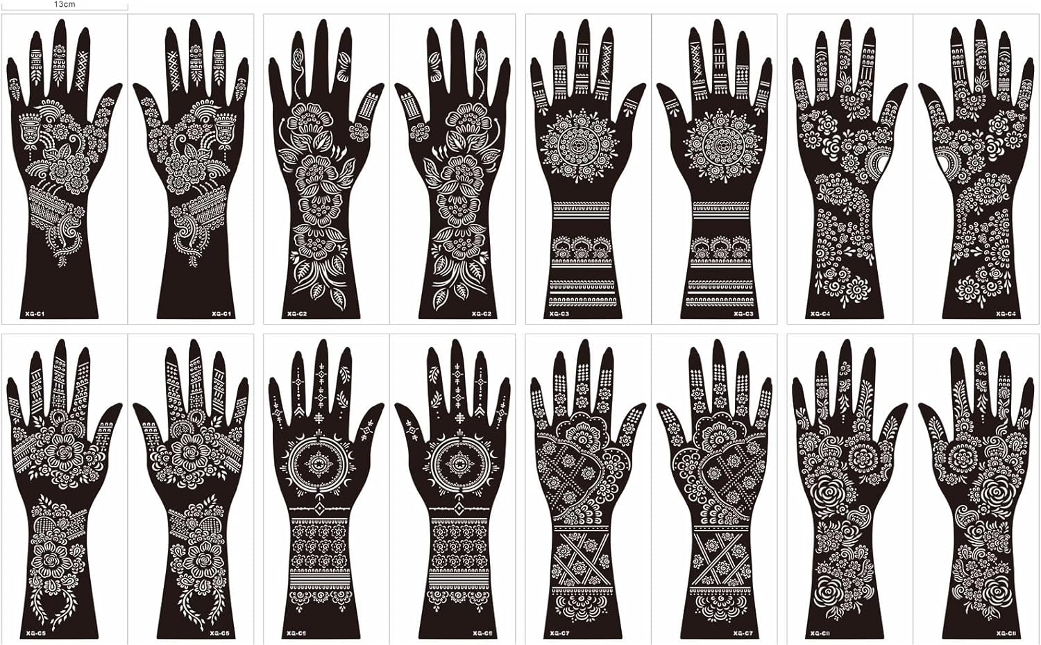 Henna Tattoo Stencils, 8 Sheets Hand Designs for Women and Girls, Temporary Tatt