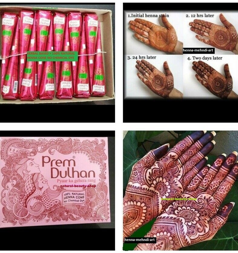 2 X New Fresh Quality Prem Dulhan Natural Henna Mehndi Tattoo Cone Darkest Brown
