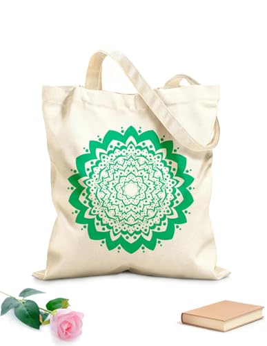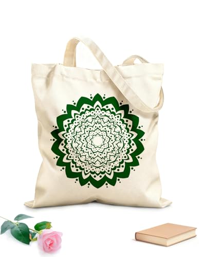 XIARON Canvas Bag Circular pattern in mandala shape henna tattoo mehndi style 340g/m² thick fabric Sketching bag L Green
