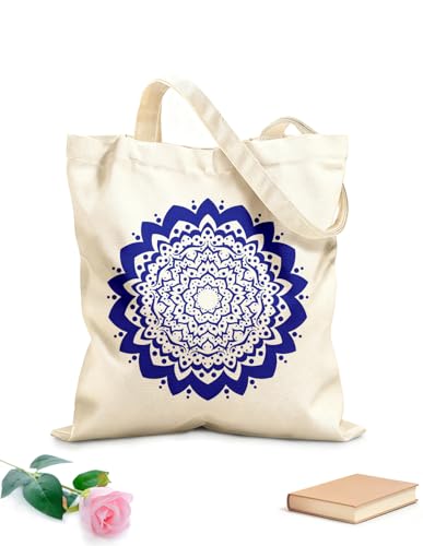 XIARON Canvas Bag Circular pattern in mandala shape henna tattoo mehndi style 340g/m² thick fabric Sketching bag L Blue