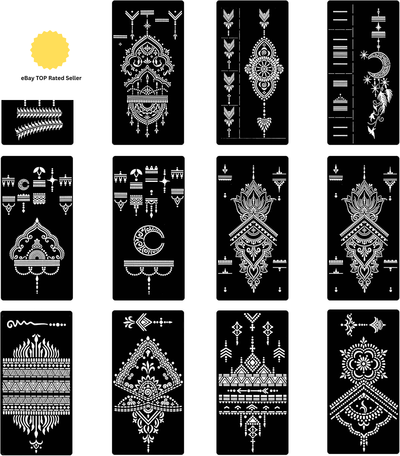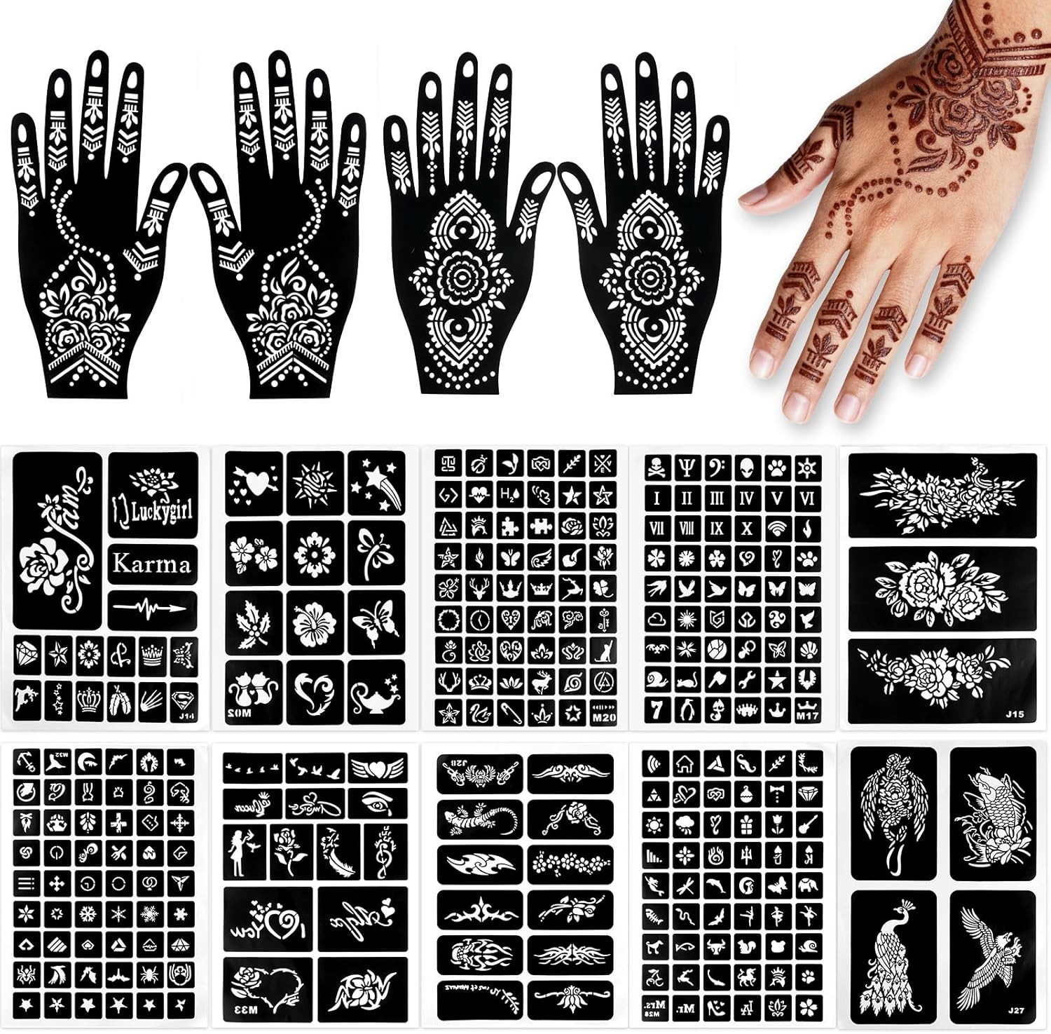12 Sheets Henna Tattoo Stencils Set, Hand Temporary Tattoo Temples, Reusable In