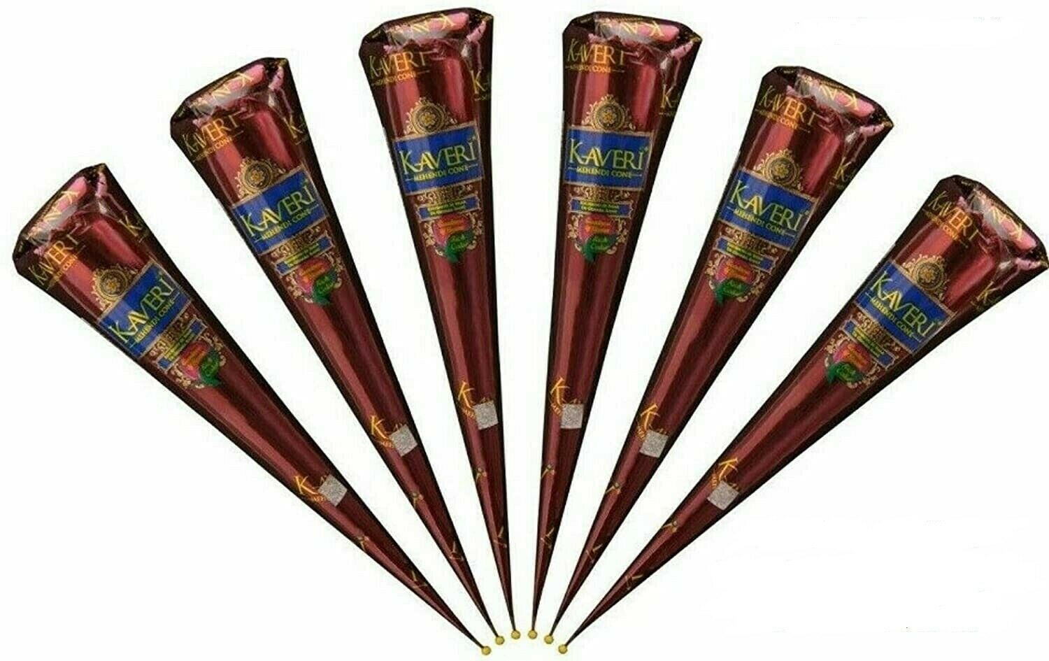 6 X New Fresh Quality Kaveri Natural Henna Mehndi Tattoo Pen Cone Darkest Brown