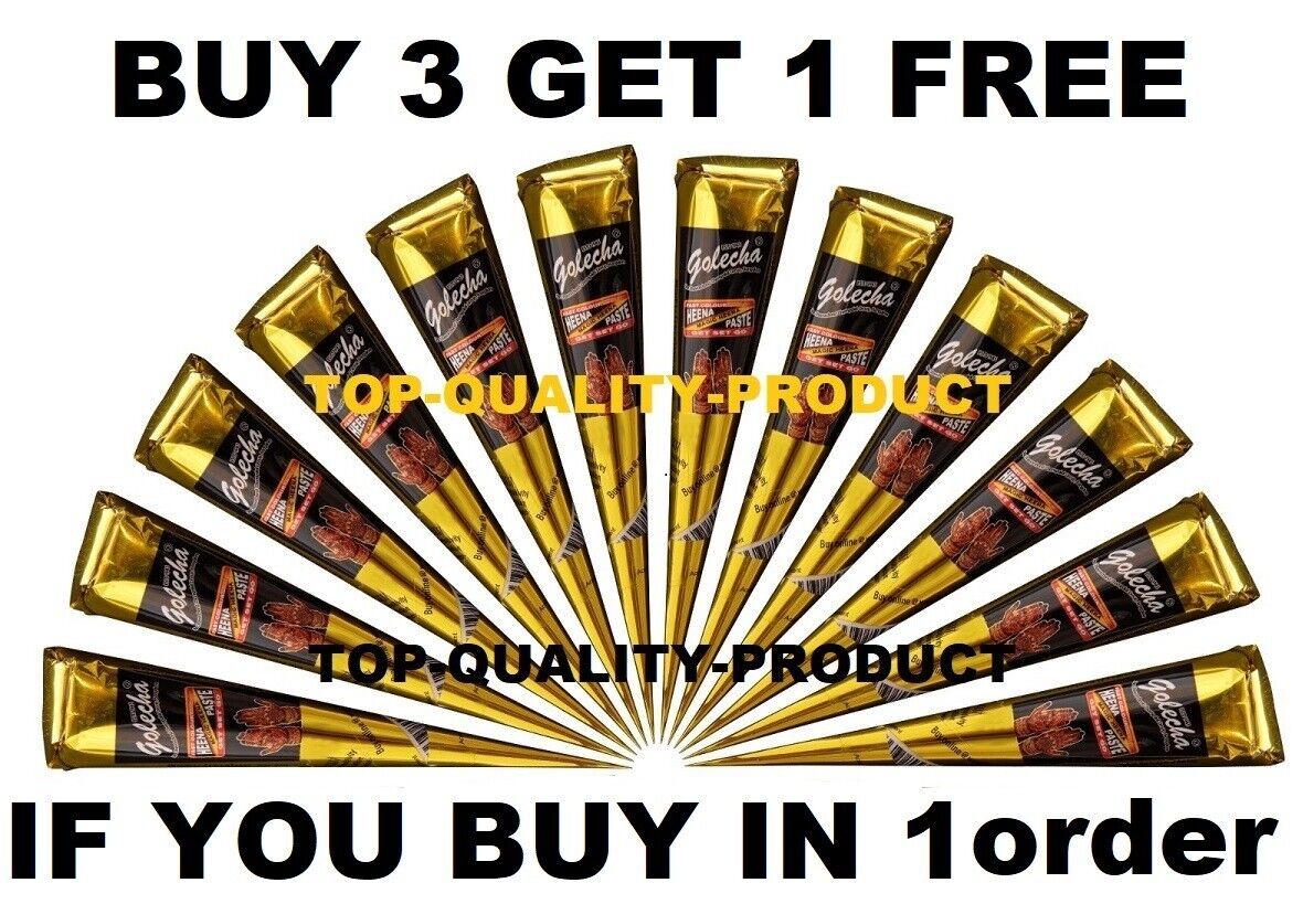 3 X DARKEST NATURAL HENNA MEHNDI TATTOO KIT PASTE CONES - 100% COLOUR GUARANTEED