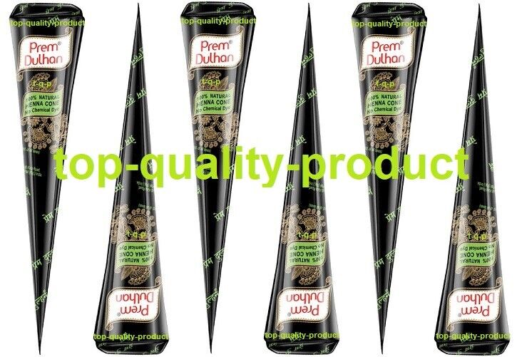 6 X New Fresh Quality PREM Natural Henna Mehndi Tattoo Pen Cone Darkest Brown