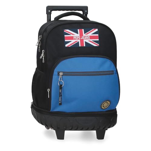 Pepe Jeans Henry Backpack Compact 2 Wheels Black 32x43x21cm Polyester 29L by Joumma Bags