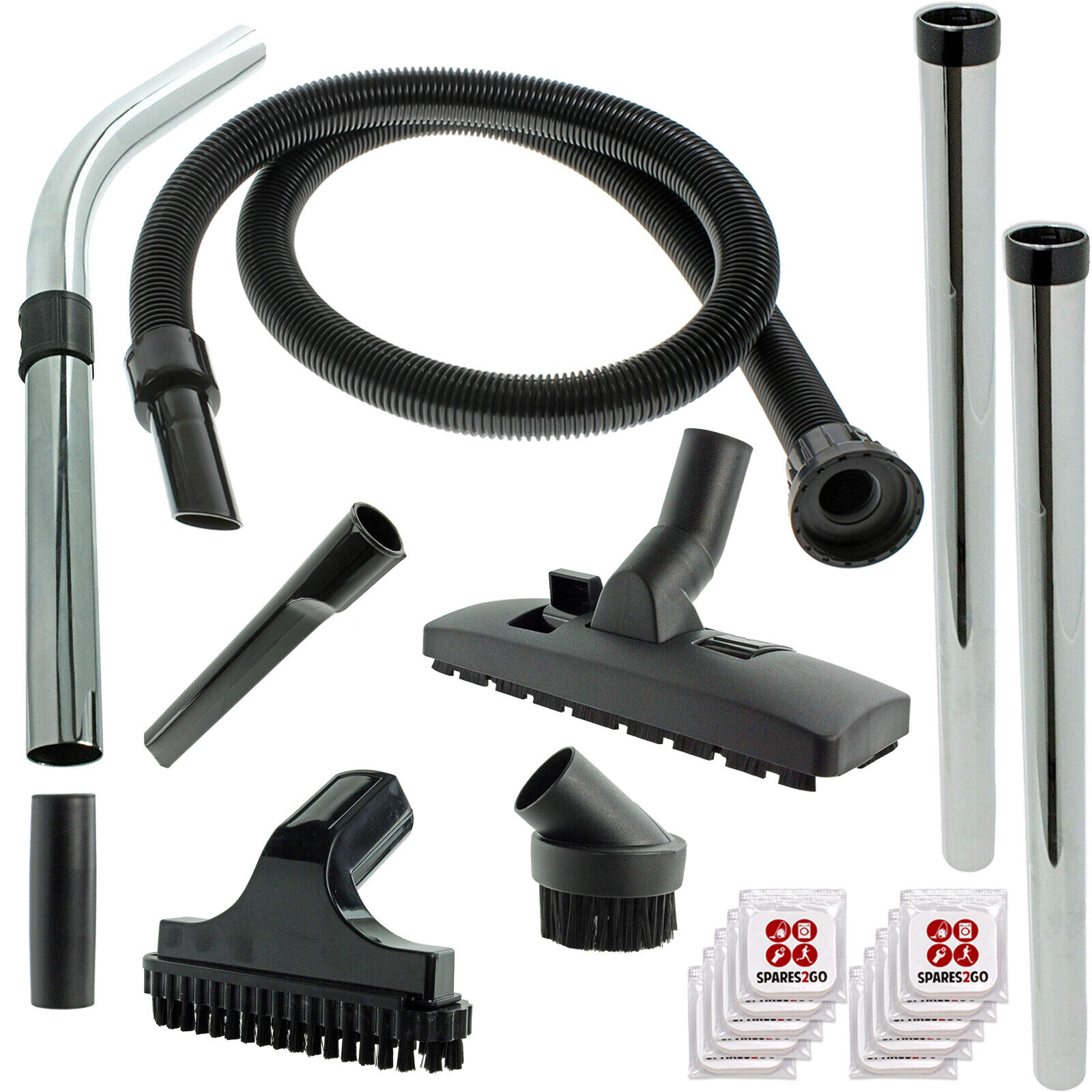 Spares2go Complete Wet & Dry 2.5m Hoover Hose, Rods, Floor & Mini Tool Kit for Numatic Henry Hetty etc Vacuum Cleaners (+ 10 Bags + Fresheners)