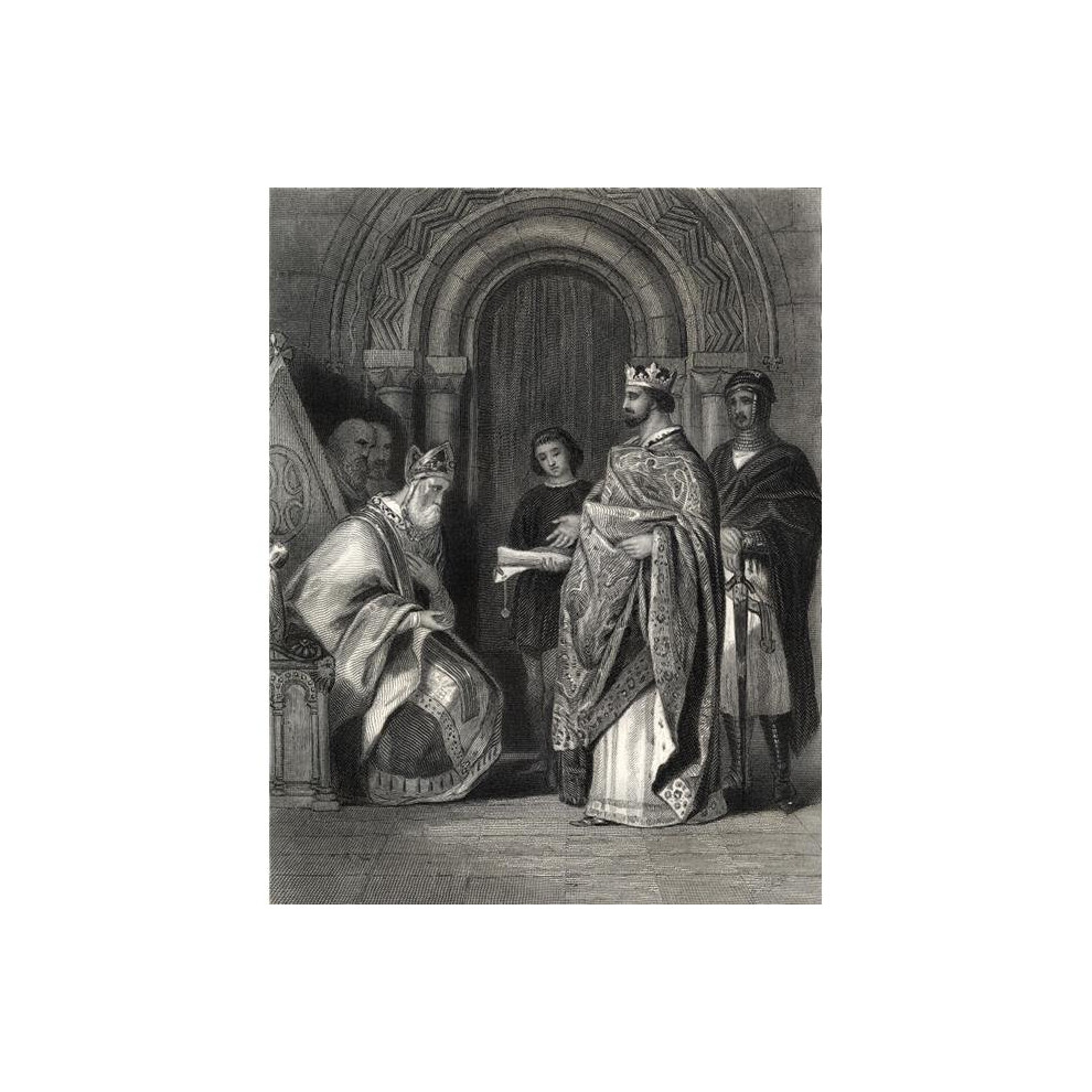 Henry II Presenting The Popes Bull To The Archbishop of Cashel. Drawn by H.Warren Engraved by G. Greatbach Poster Print, Large - 24 x 32