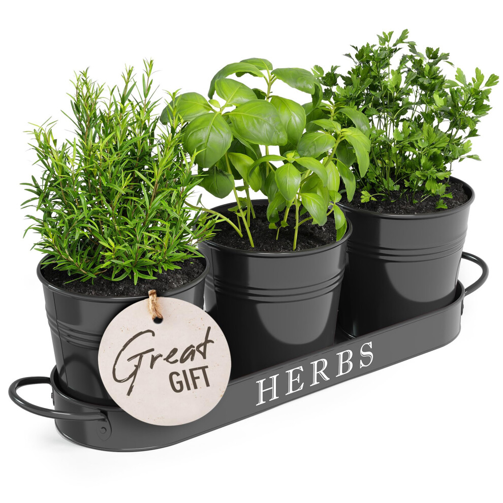 Indoor Herb Garden, Herb Garden Planter for Indoor/Outdoor, Farmhouse Plant Pots, Windowsill Herb Garden Kit with Tray,