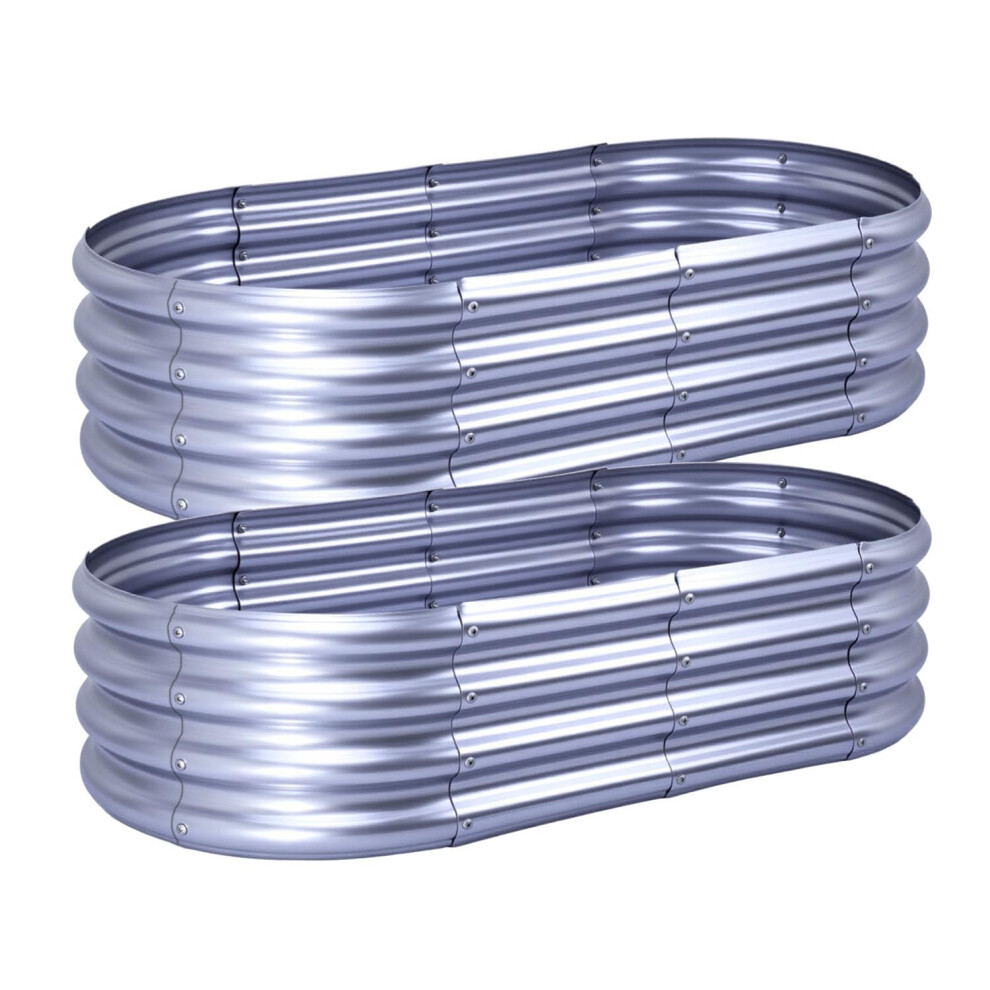 KINI MOX 2Pcs Raised Garden Bed Galvanized Raised Garden Boxes Outdoor Planter Box Planter for Vegetables Flowers Herb GG2 (Oval, 4x2x1 FT)