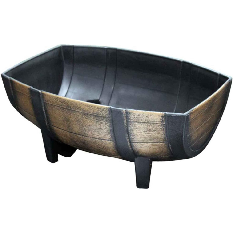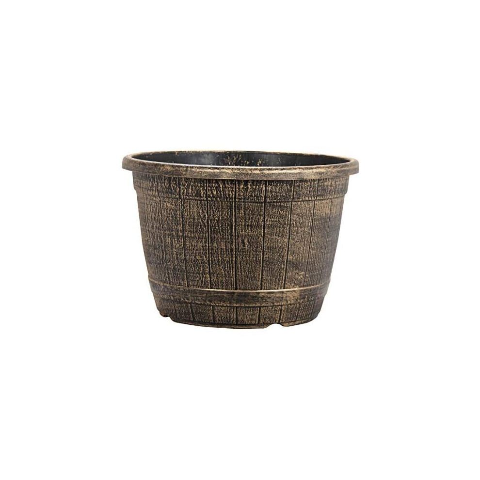 Muddy Hands Bronze Wooden Barrel Effect Plant Pot Round Plastic Planter Outdoor Garden Flower Tree Herb (1, 13.2 Litre)