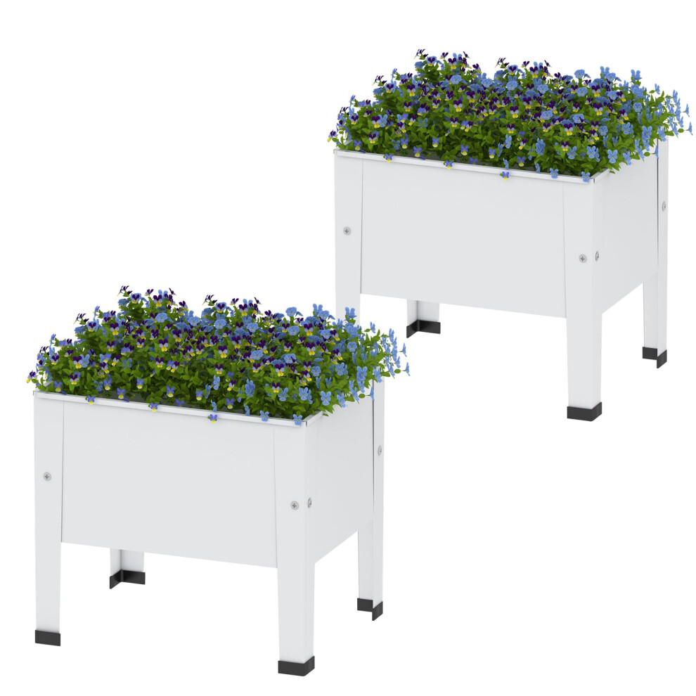 aboxoo Mini Planter Raised Garden Bed with Legs Outdoor Metal White Small Planter Box Elevated Garden Bed for Vegetables Flower Herb Patio White 2PCS