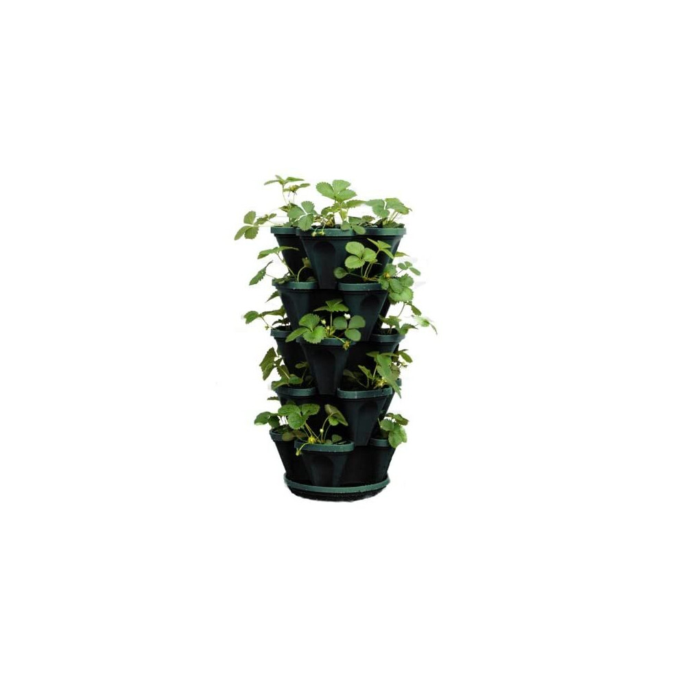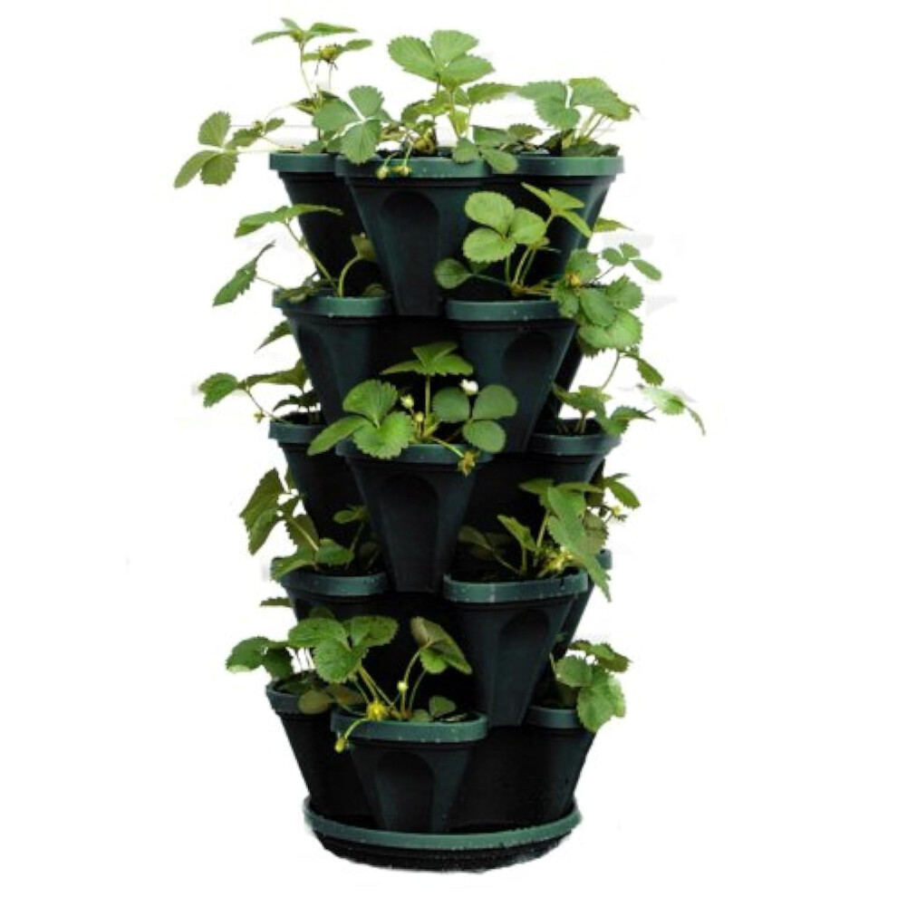 Mr. Stacky 1305-HG 5-Tier Stackable Strawberry, Herb, Flower, & Vegetable Planter - Vertical Gardening Indoor/Outdoor Stacking Garden Pots Hunter