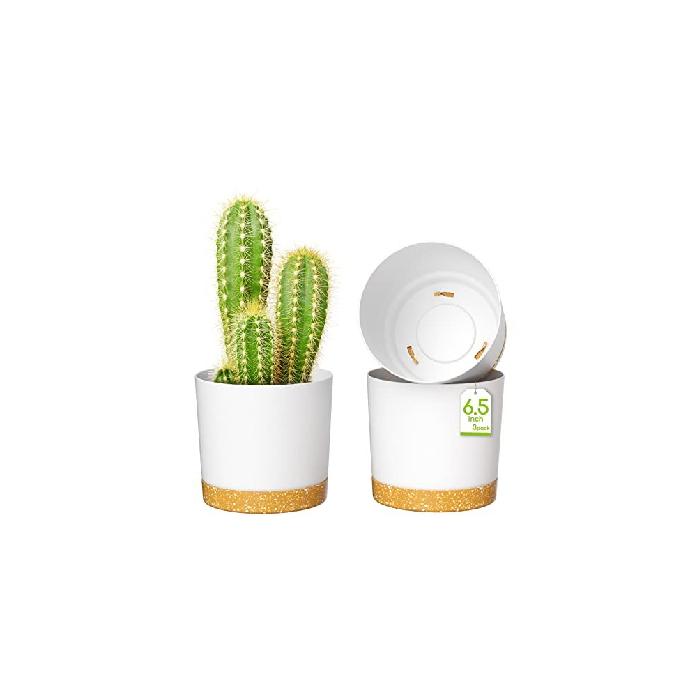 16.5CM Plant Pot, Plastic Planter with Saucer, Self Watering Garden Flower Pot with drainage Holes for Indoor Outdoor Succulent, Herb, Orchid, Mint
