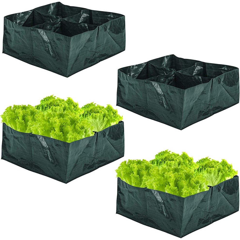 4 Pack Fabric Raised Garden Bed- 4 Divided Grids Square Raised Garden Planter Grow Pot for Outdoor Herb Flower Vegetable