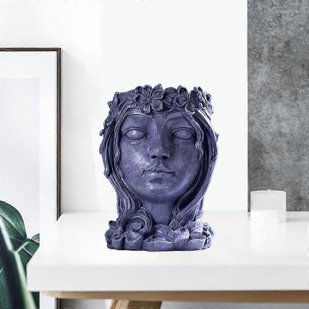 (gray, One size) Retro Resin Portrait Goddess Face Head Planter Beauty Face Figurine Succulent Herb Pot Indoor Outdoor Home Decor Patio Yard Office De
