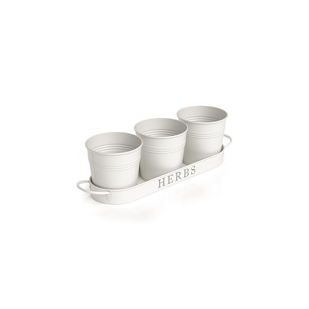 Barnyard Designs Herb Pot Planter Set with Tray for Indoor Garden or Outdoor Use, Decorative White Metal Succulent Pots for Kitchen, (Set of 3, 1