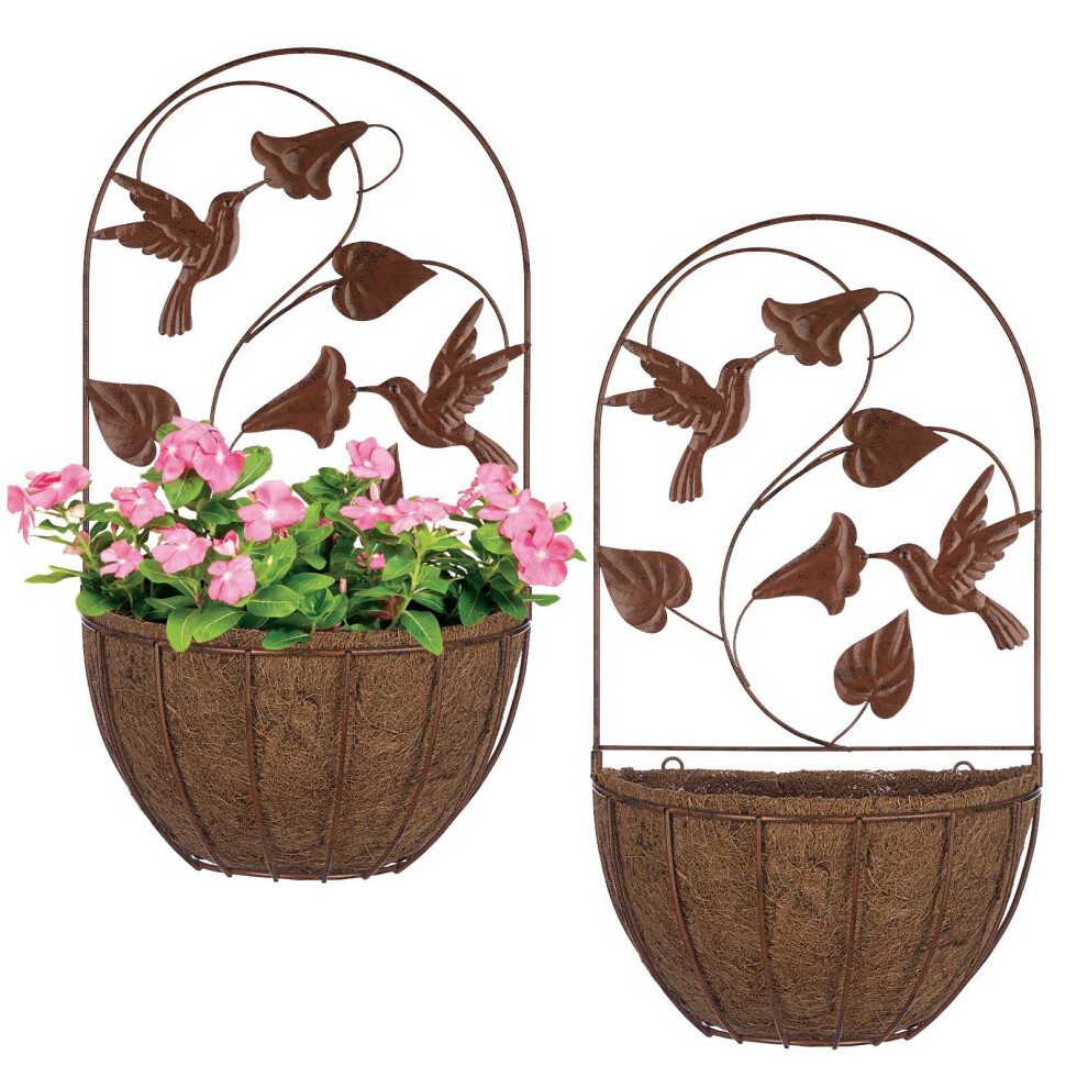 BAYN 2PKs Wall Hanging Planter Decor Art with Hummingbirds Metal Wall Mounted Planters Indoor Outdoor Wall Planter for Succulent Herb Home Garden Yar