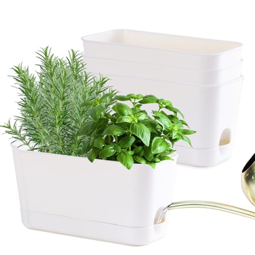 Oliz Herb Garden Planter Kit Self Watering Pots for Indoor/Outdoor Plants 4 Packs Windowsill Plant Pots with Drainage and Tray, Window Pot