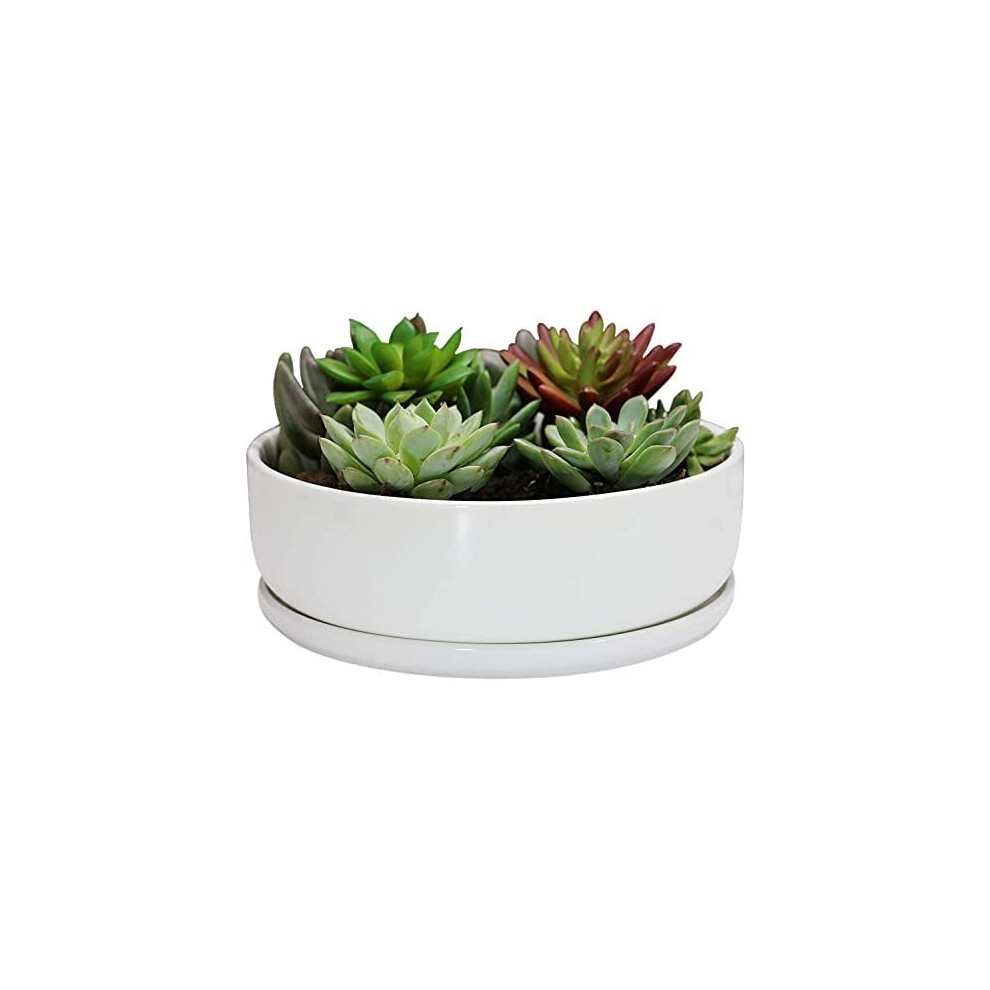 SQOWL 20cm White Round Ceramic Succulent Planter Pot Modern Flower Cactus herb Big Planter with Removable Saucer Indoor or Outdoor