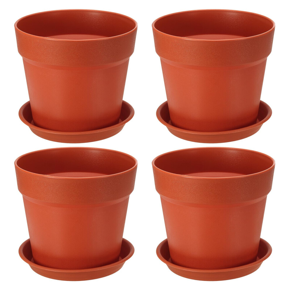 7.9 Inch Plastic Plant Pots 4 Pack with Drainage Holes and Tray for Indoor Succulent Herb Planters Red