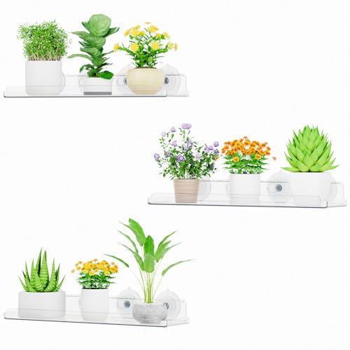 Lifewit Window Plant Floating Shelves 15 inch, 3 Pack Acrylic Suction Cup Shelf, Window Sill Extender for Indoor Succulent Plants, Micro Greens, Seed Starter Pots, Herb Planters