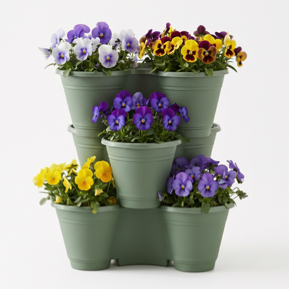 PURE GARDEN Stackable Herb and Flower Planters for Indoor and Outdoor use Perfect for Balconies and Gardens Set of 3 Green
