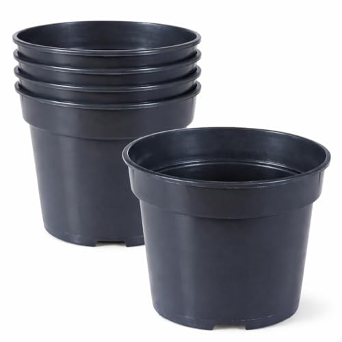 EarlyGrow 10-Pack 5 Litre Round Plastic Plant Pots Nursery Herb Flower Planters Horticulture, Hydroponics, Indoor/Outoor, Household and Garden Plants, Fruits and Vegetables (10, 5 Litre)