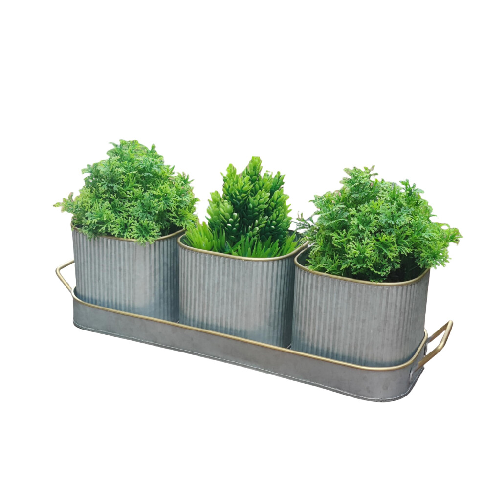 Dipamkar Set of 3 Galvanized Windowsill Herb Pots Metal Herb Planters Wth Saucer for Kitchen Window Indoor and Outdoor Use