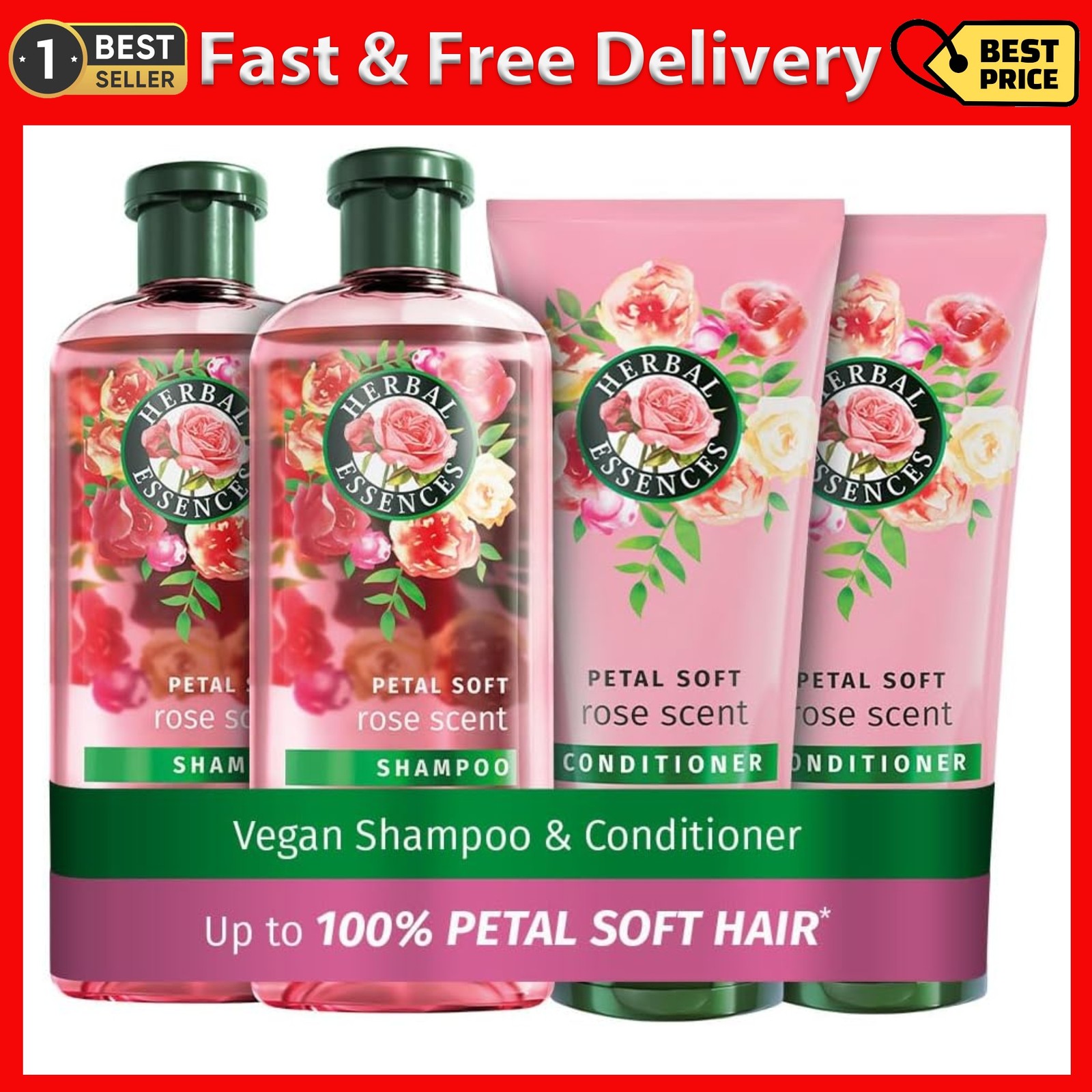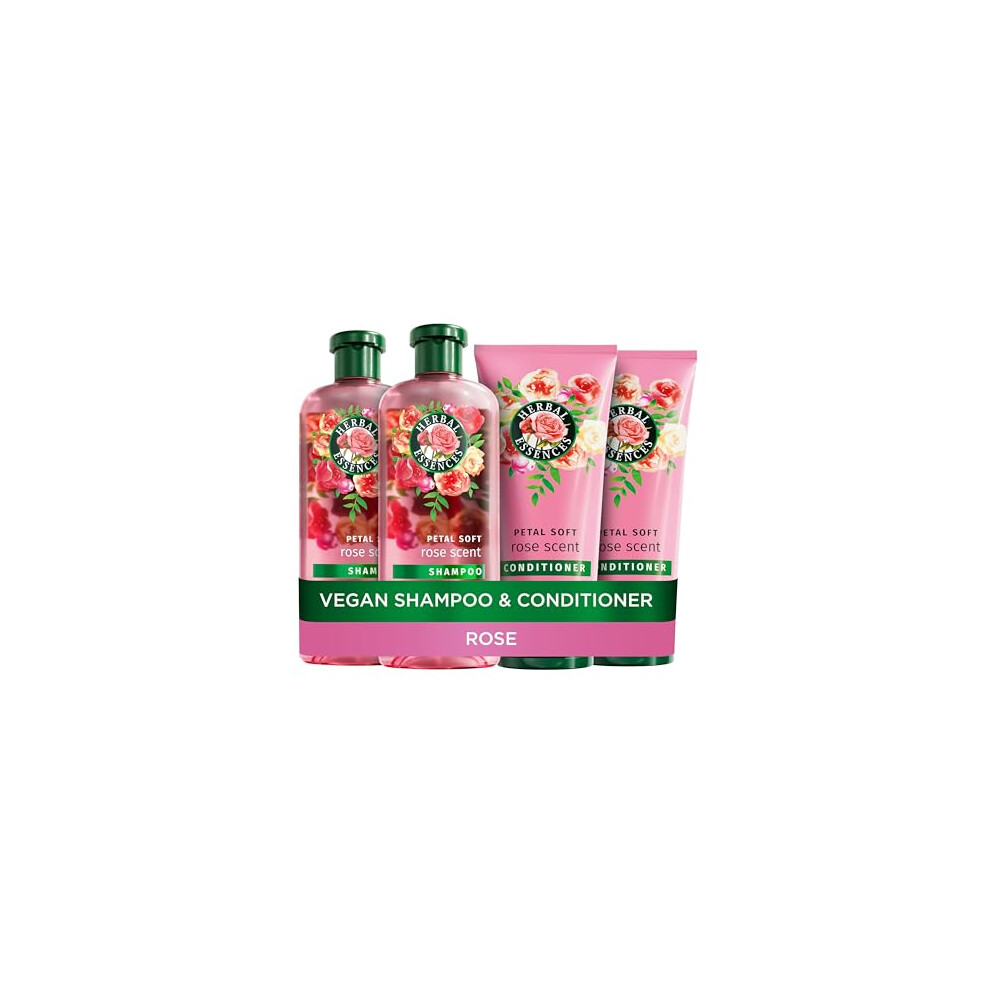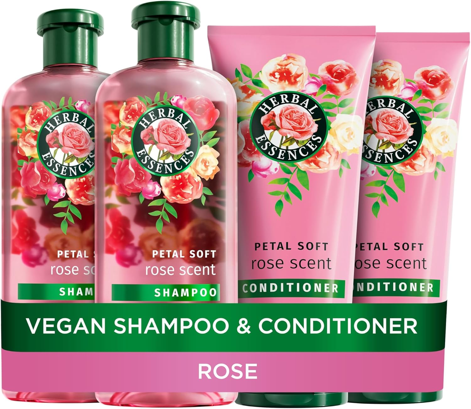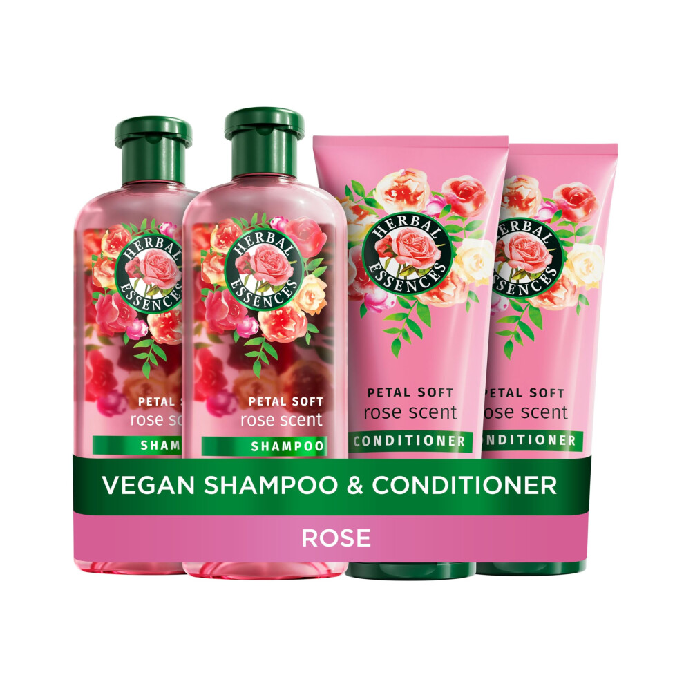 Herbal Essences Rose Scent Petal Soft Shampoo and Conditioner Set (2x350ml, 2x250ml) | Nourishes & Smoothens dry hair | Blended with Rose Essence & Natural Origin Ingredients | Vegan & Cruelty Free