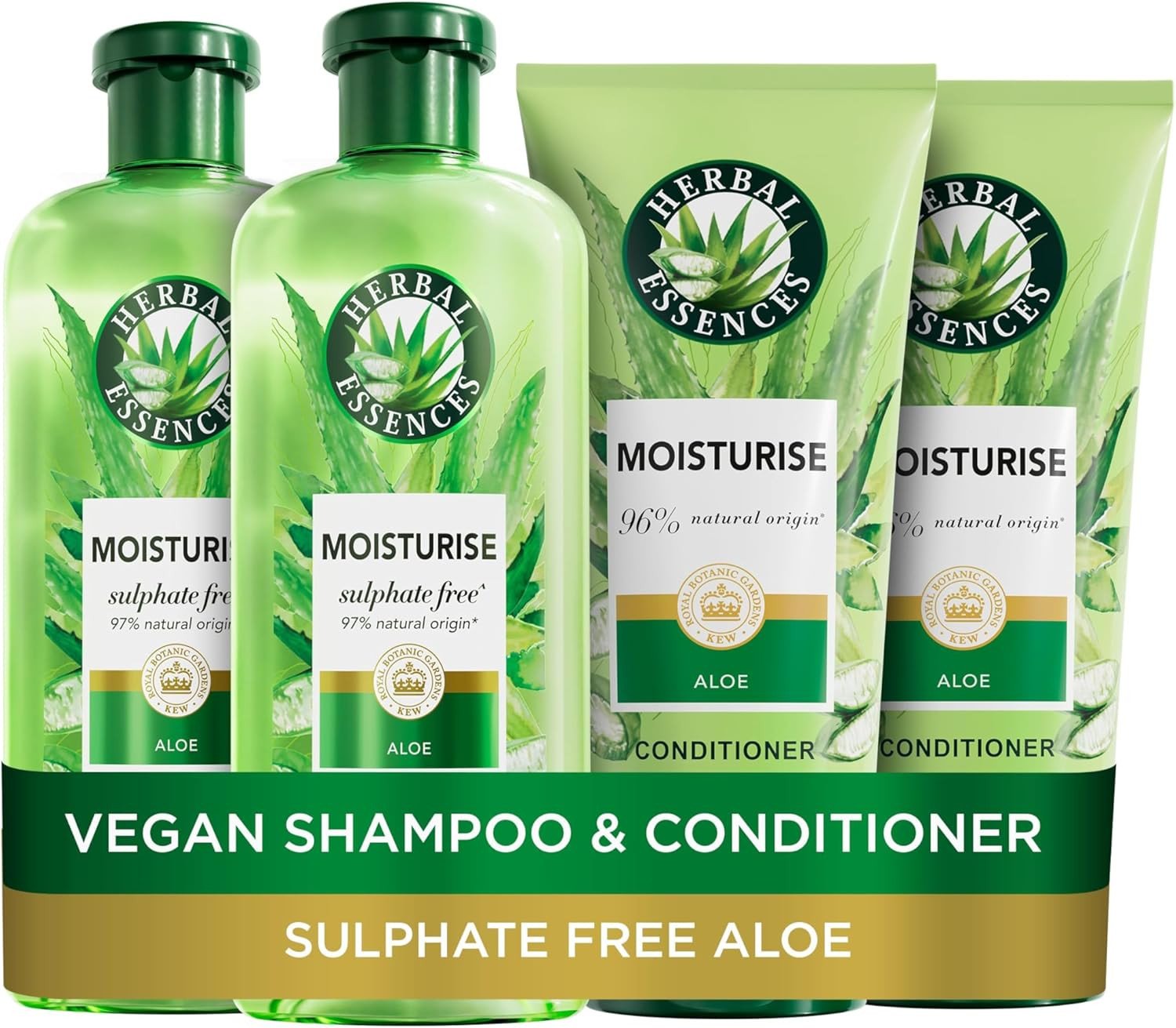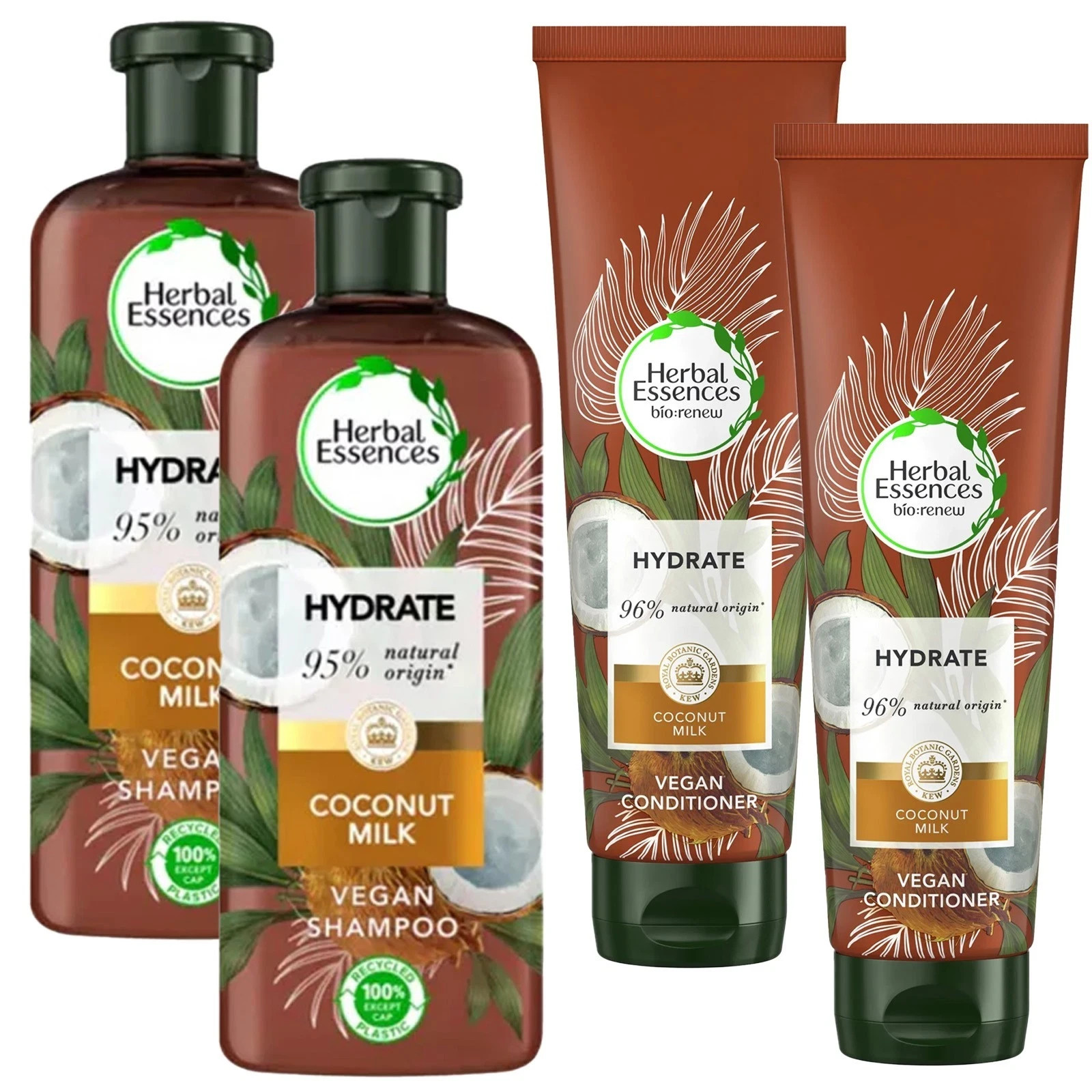 Herbal Essences Sulphate Free Shampoo and Conditioner Set For Dry Hair Including Curly and Wavy, Hydrate, Cleanse and Nourish, Sulfate Free & Vegan, VALUE PACK, 2x350ml Shampoo, 2x 250ml Conditioner
