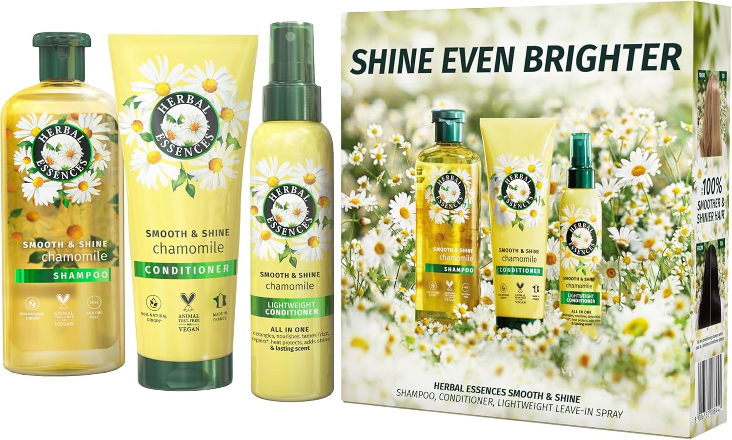Herbal Essences Smooth & Shine Chamomile Giftset: Shampoo, Conditioner, Leave-in Spray