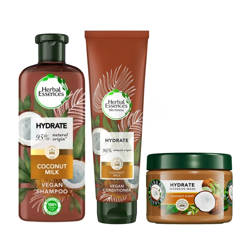Herbal Essences Hydrate Vegan Conditioner 275ml Shampoo 250ml & Mask 250ml