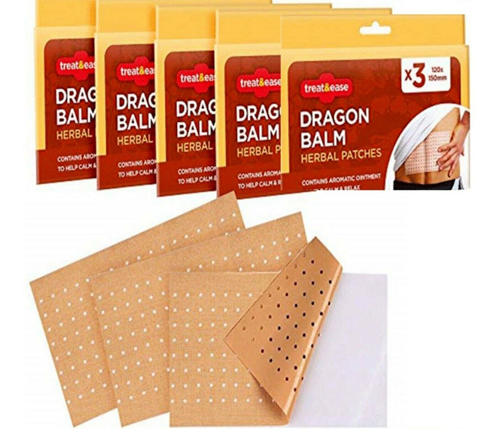 Dragon Balm Herbal Patches Pain Relief Heat Back Knee Muscle 3pc