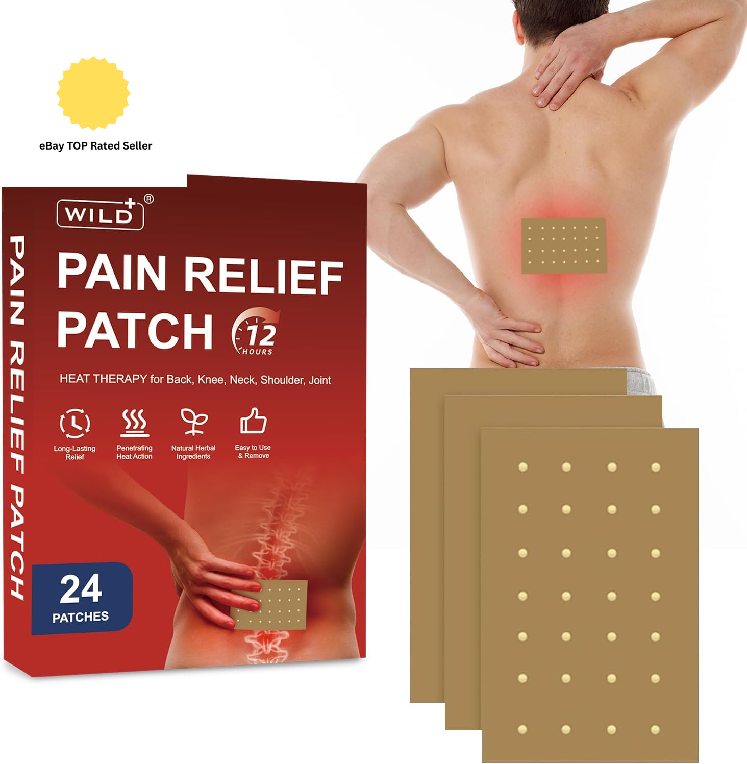 24PCS Pain Relief Patches, Heat Patches for Back Pain Relief Herbal Knee