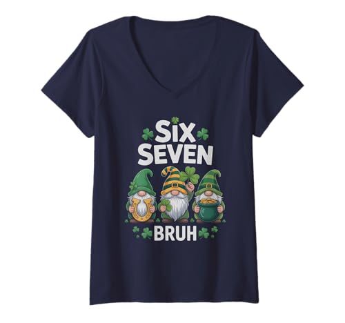 Women's Cute 67 St Patricks Gnomes Humor 6 7 Bruh Gen Alpha Z Meme V-Neck T-Shirt