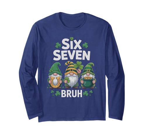 Cute 67 St Patricks Gnomes Humor 6 7 Bruh Gen Alpha Z Meme Long Sleeve T-Shirt