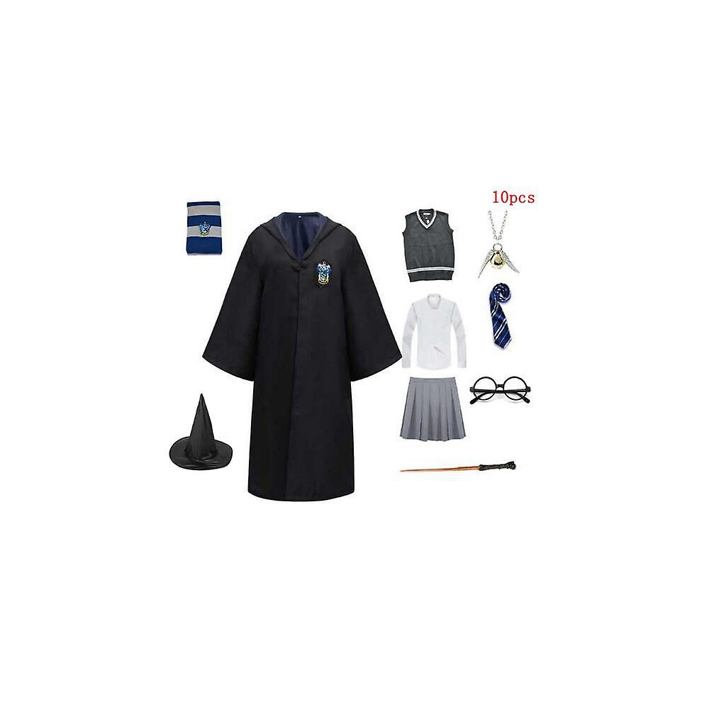 (Package 6-blue, Kids 145) Magic Cape Cloak Robe Hermione Granger Costume Costume Skirt Harryypotter Scarf Glasses Gryffindor Holiday Partygift Access