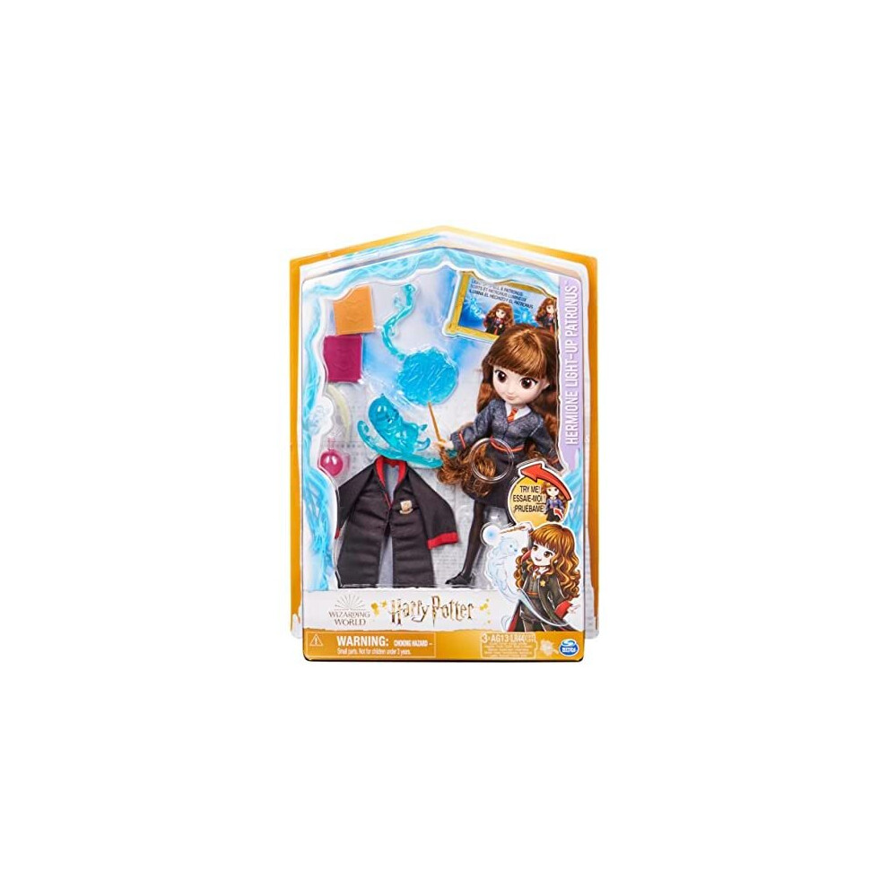 Wizarding World Hermione Granger Light-Up Patronus Doll with 7 Accessories & Hogwarts Robe, 20.3 cm