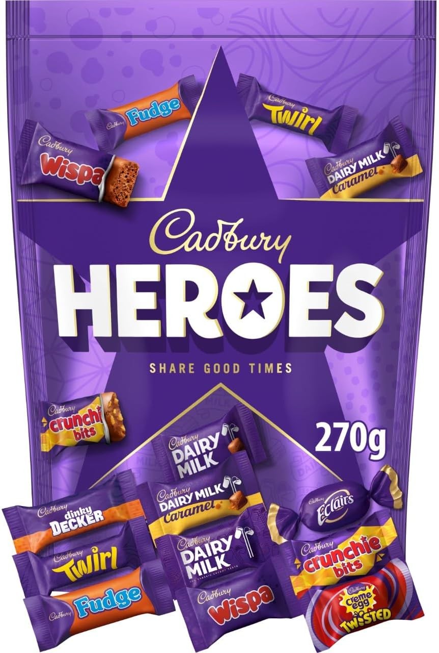 Cadbury Heroes Chocolate Pouch 270g, Assorted Miniature Chocolates for Sharing