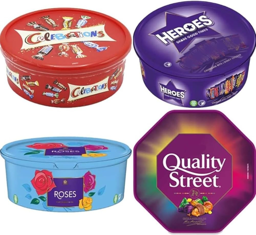 4 x Chocolate Tubs ASSORTED PACK 1 EACH Of Celebrations, Heroes, Roses, Quality