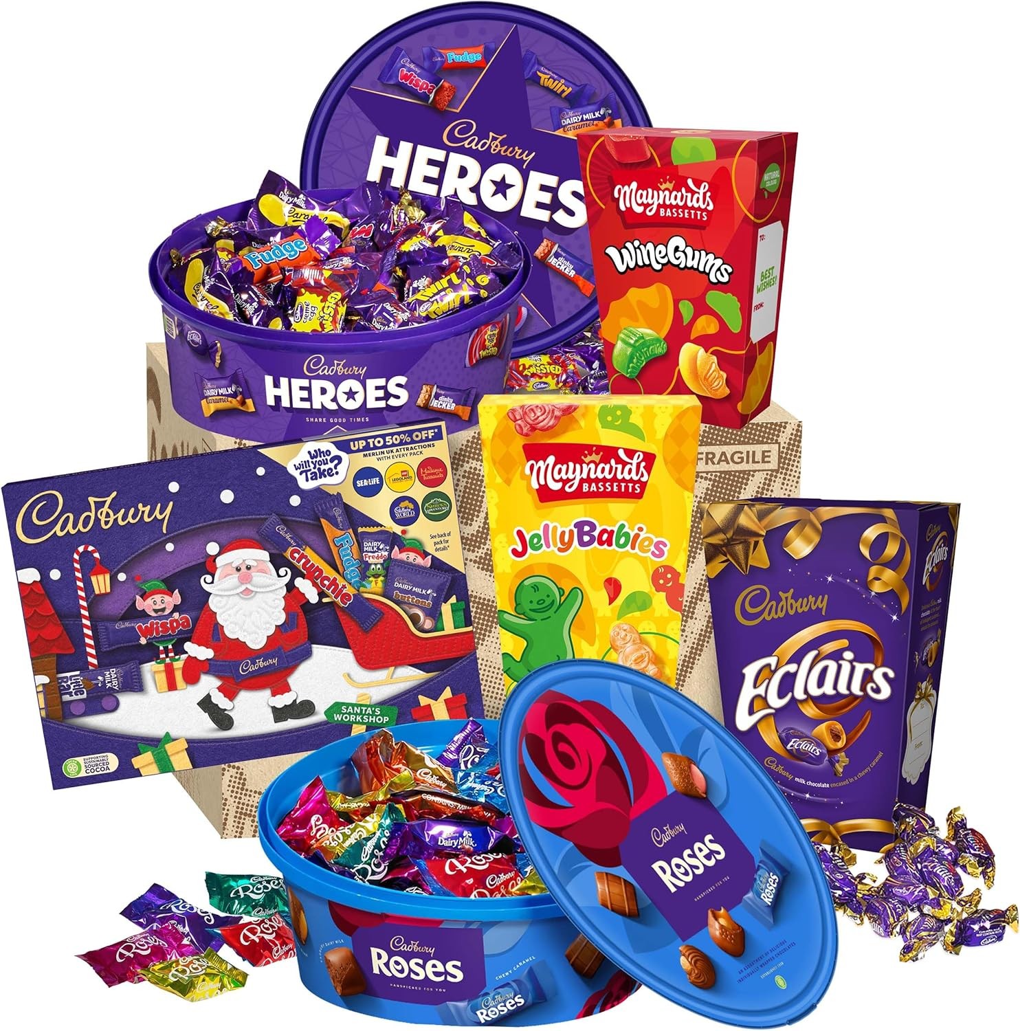 Cadbury Christmas Hamper by Gifts Direct- Heroes, Roses, 11 Piece Set
