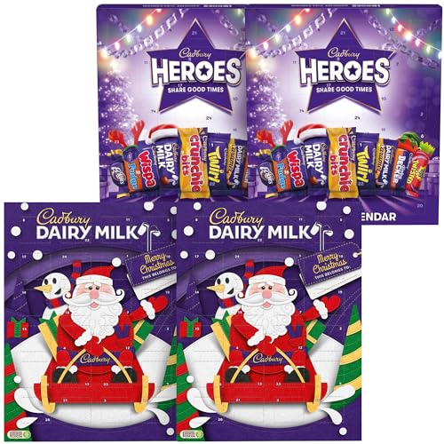 Cadbury Family Chocolate Advent Calendar Bundle, Includes 2 x 90 g Dairy Milk Chocolate Advent Calendars & 2 x 230 g Heroes Advent Calendars, Perfect for your Christmas Countdown