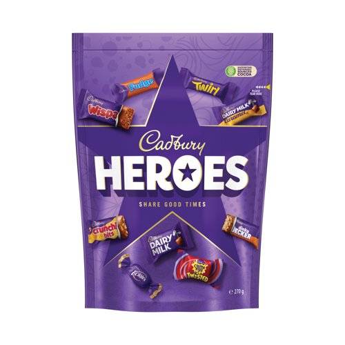 Cadbury Heroes Chocolate Pouch, Assorted Miniature Chocolates for Sharing, The Perfect Christmas Treat, 270 g (Pack of 1)