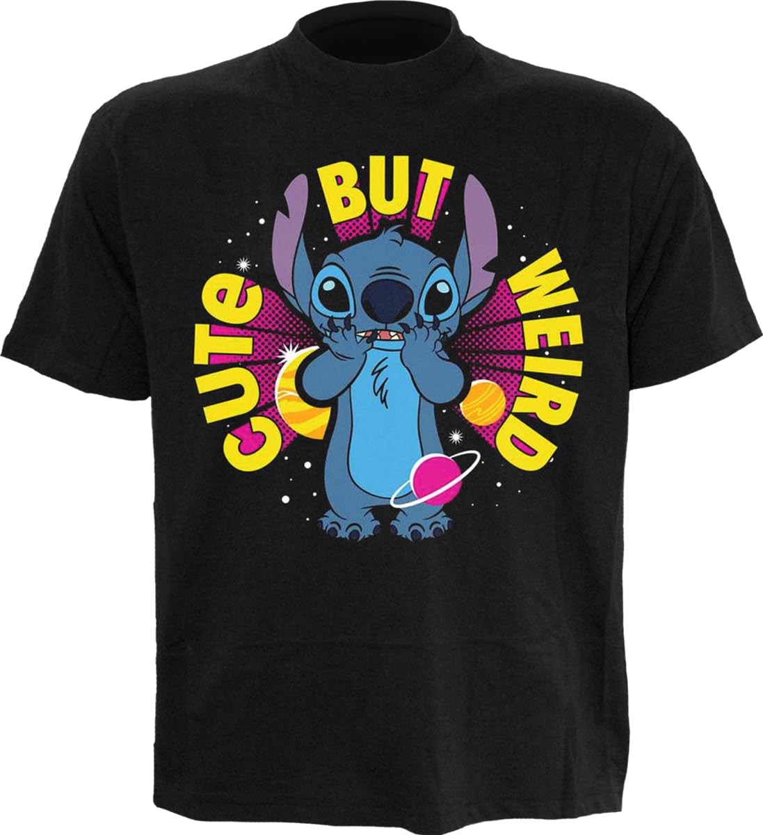 Disney Stitch - Cute But Weird - Front Print T-Shirt Black - XL