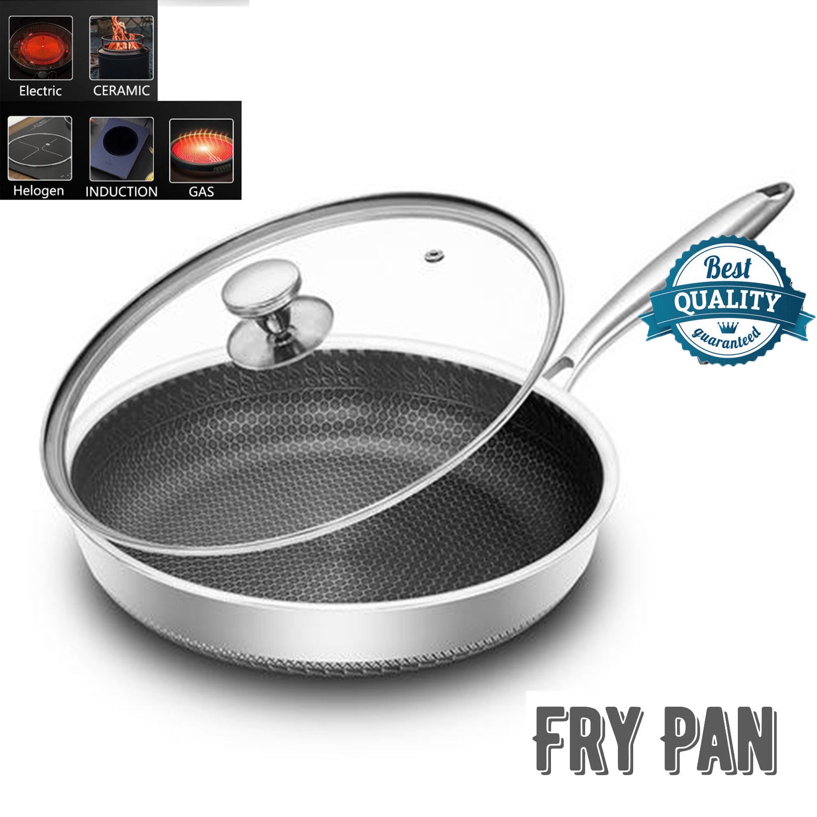 Stainless Steel Induction Geo Hex Frying Pan Non Stick Cooking Cookware 30cm