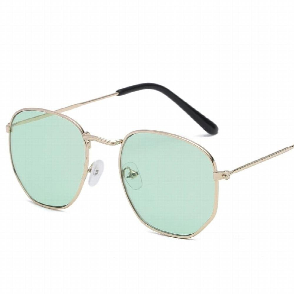 Men Hexagonal Flat Lenses Aviation Sunglasses Vintage Women Pink Mirror Driving Sun Glasses