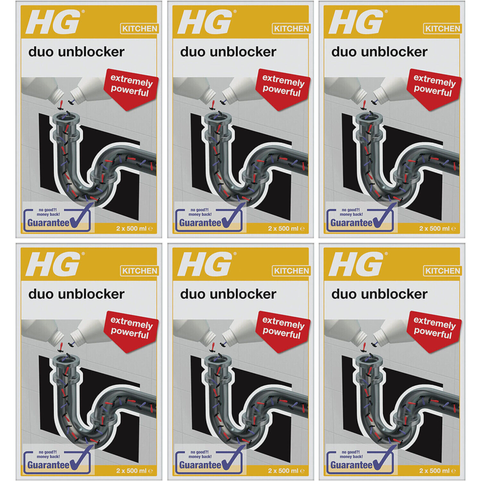 6 x HG Kitchen Duo Unblocker Kitchen Sink Quick And Powerful Drain Unblocker - 2 x 500ml